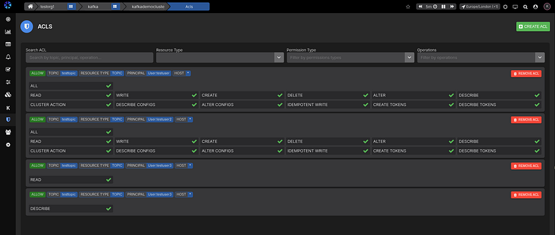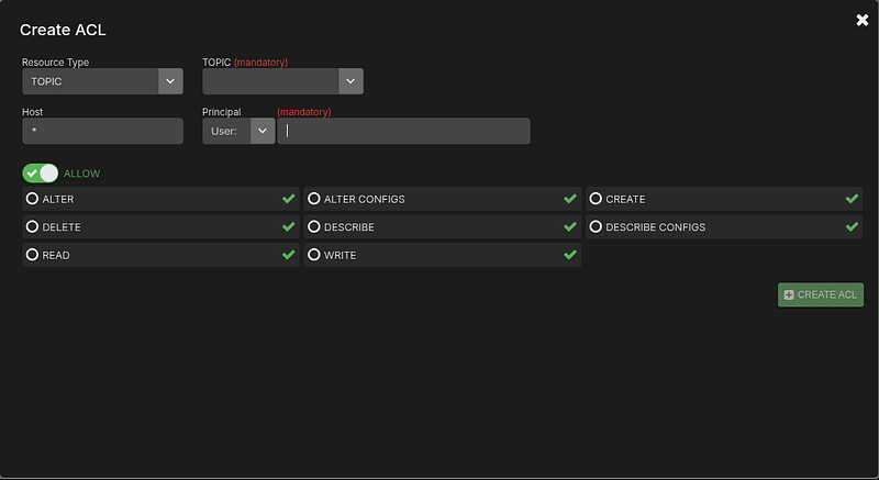 Managing Kafka ACLs is notoriously painful. Most tools offer limited or no support for ACL management, and the built-in CLI is cumbersome to use and automate. As a result, teams often skip ACLs entirely or fall back on overly permissive rules — leading to insecure and hard-to-audit Kafka environments.