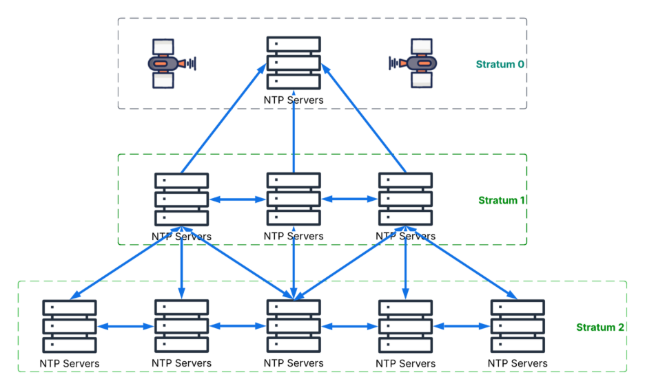 Each NTP server operates at a certain “stratum” level. Stratum defines how far away the server is from a reference clock (e.g., an atomic clock):